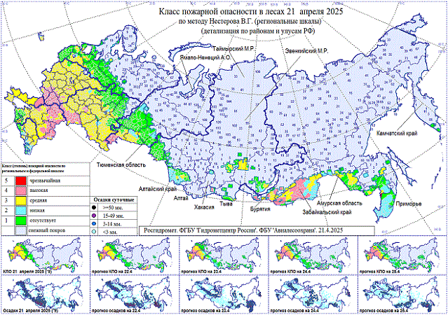 Высокая, местами чрезвычайная пожарная опасность 22-24 апреля на юге Центрального и Приволжского федеральных округов, в Ростовской, Волгоградской, Астраханской областях, Калмыкии, на юге Челябинской области и Забайкальского края.