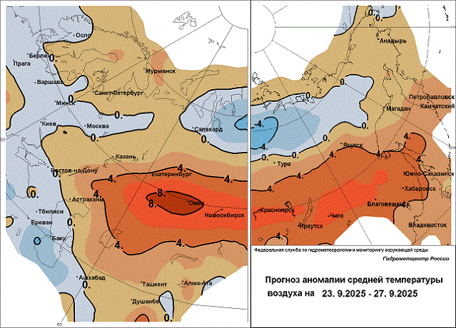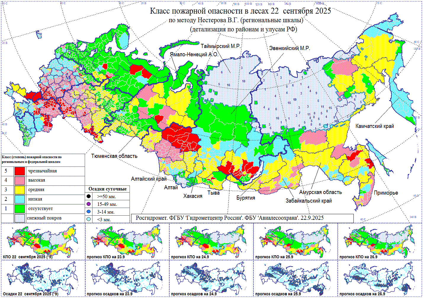Высокая, местами чрезвычайная пожарная опасность 23-25 сентября на юге Центрального и Приволжского, севере Южного федеральных округов, в Донецкой и Луганской Народных Республиках, Омской, Томской, Новосибирской областях, на западе Алтайского края, юге Иркутской области и Хабаровского края, в Приморском крае.