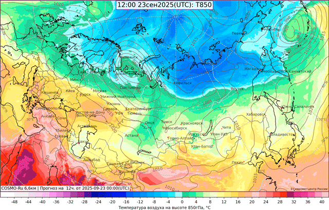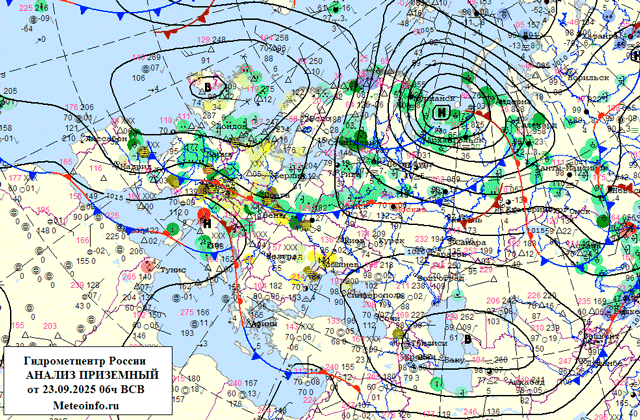 24 сентября через территорию Центрального федерального округа (ЦФО) с севера на юг продолжит медленно перемещаться холодный атмосферный фронт циклона с центром над северо-восточной частью Европейской России. В большинстве областей ожидаются небольшие и умеренные дожди, днем на юге в отдельных районах гроза, ветер с порывами 15-18 м/с. Преобладающая температура воздуха составит в северо-западной половине округа, за линией фронта, ночью 2…9°, днем 7…14°; в юго-восточной половине ночью 7…14°, днем 12…19°, на юге до 27°.