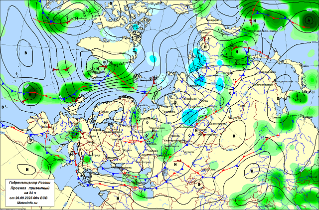 25 - ночью 26 сентября циклон, сместившийся из Приморья на северо-восток Японского моря, вызвал сильные дожди с грозой на Сахалине, оставив до 53 мм влаги. Обширный циклон и его фронтальные зоны обусловили сильные грозовые дожди в Хабаровском крае, где выпало до 37 мм осадков. Атмосферные фронты циклона, прибывшего из Восточной Сибири, принесли сильные осадки в виде дождя и мокрого снега (до 39 мм) а также усиление ветра до 22 м/с в Якутию...