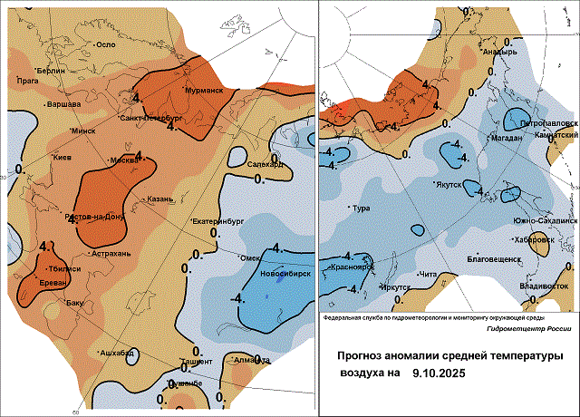 7 октября сильные осадки (дождь, снег, мокрый снег) накроют Амурскую область, ветер усилится до 15 м/с, не исключены гололедные явления. Днём термометры покажут +9…+14, на севере 0…+5 градусов. 8 октября сохранится небольшой дождь с мокрым снегом, 9 октября осадки прекратятся. Значительно похолодает: до +5…+10 градусов на юге, до -4…+1 градуса на севере. В Хабаровском крае 7-9 октября пройдут небольшие осадки, 8 октября местами умеренные. Также ожидается понижение температуры воздуха от +12…+17 градусов 7 октября до +6…+11 градусов 8-9 октября.