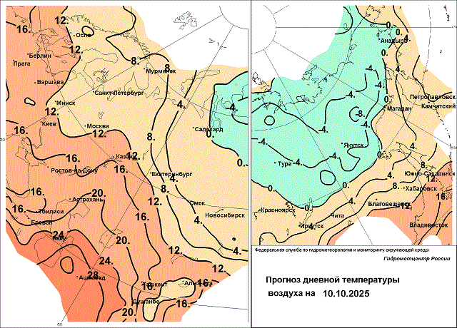 Аналогичная погода намечается и на Северном Кавказе. Здесь небольшие и умеренные дожди начнутся также 9-10 октября, местами пройдут сильные дожди, порывы ветра 9 октября в Ингушетии и Чеченской Республике достигнут 20-25 м/с. Дневная температура воздуха 8-9 октября составит +18…+23 градуса, местами до +26, в горах Ингушетии, Чеченской республики и Дагестане +24…+29 градусов, а в горах Карачаево-Черкесии понизится до +12…+17 градусов. 10 октября преобладающая температура днём упадёт до +15...+20 градусов.