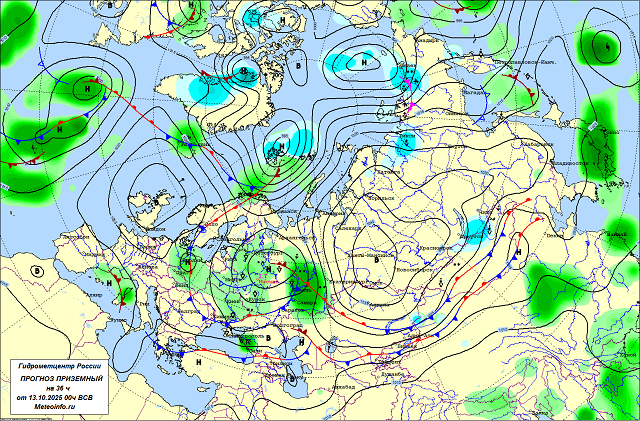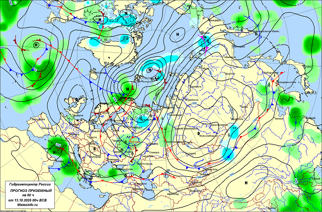 Из южных краёв циклон отправился в Центральные регионы России, и превратил теплую золотую осень в  холодную и дождливую. Затем он объединится с другим северным циклоном и  образует гигантскую ложбину  от Кольского полуострова до Европейского юга,  обрушив  осадки различной интенсивности.  В минувшие сутки сильные дожди, местами с мокрым снегом прошли в Поволжье (в Самарской и Оренбургской областях), в Центральном округе (Московской, Тверской, Смоленской и Калужской областях), в Северо-Западном округе (Псковской, Мурманской областях, Ненецком а.о.) Выпало от 17 мм осадков в Центральных областях до 31 мм в Мурманской области.  Сегодня сильный дождь планируется во Владимирской и Рязанской областях, завтра 14 октября пройдёт в Башкортостане в сочетании с ветром 15-20 м/с.
