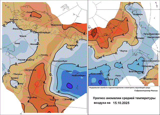 Влияние Балканского циклона, принёсшего ливни, похолодание и первый снег на юг Европейской России, ещё здесь удерживается. Вчера 12 октября в Краснодарском крае, ночью 13 октября в Карачаево-Черкесии отмечались сильные дожди с грозой, выпало до 17 мм влаги. 14 - ночью 15 октября в Адыгее и Краснодарском крае сильные дожди сохранятся.