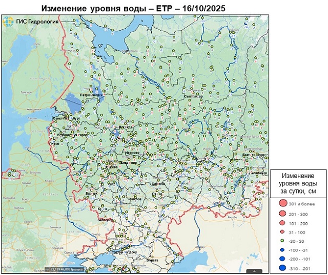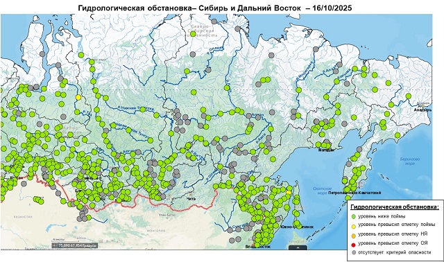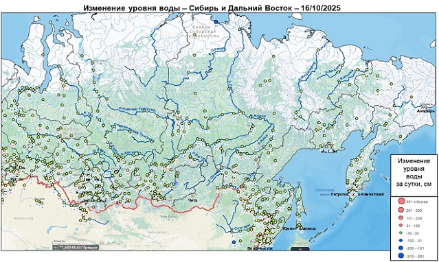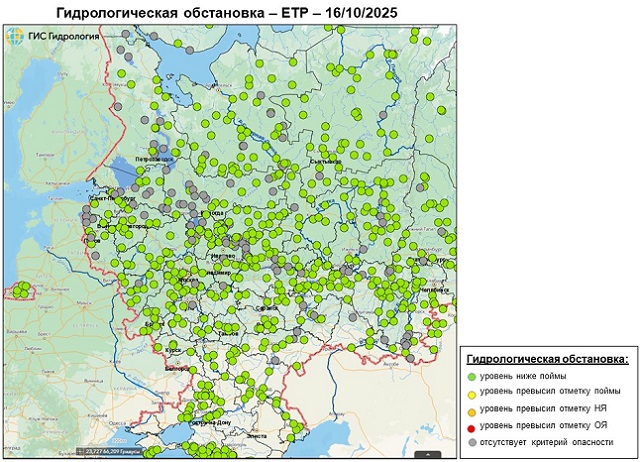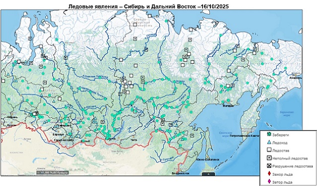 Неблагоприятные и опасные явления на реках, озерах и водохранилищах Российской Федерации по состоянию на 16 октября 2025 г.