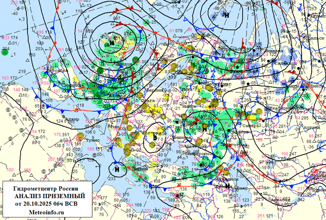 В прошедшие сутки 19 - ночью 20 октября в Краснодарском крае, Адыгее, Ростовской, Волгоградской областях отмечался сильный дождь (15-34 мм осадков). В Крыму ветер достигал 24 м/с.