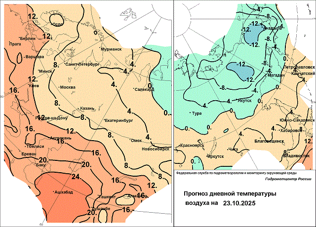 Сегодня сильные и очень сильные дожди продолжатся в Краснодарском крае, ожидаются ливни, прогремят грозы, ветер усилится до 20 м/с. В Кабардино-Балкарии прогнозируются сильные осадки в виде дождя, мокрого снега. 21-22 октября на юге европейской России прогнозируются небольшие и умеренные дожди, местами задует порывистый ветер 15-20 м/с.  Воздух в дневные часы прогреется до +6…+12, местами +16 градусов; ночью температура составит +3…+8 градусов, местами до 0, на севре до -3 градусов.