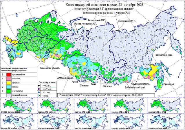 Высокая пожарная опасность 24-26 октября на севере Курганской области и крайнем юге Амурской области.