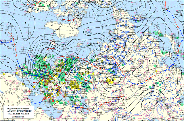 В акваторию Северного моря выходит глубокий атлантический циклон; в начале периода на юге и северо-западе, затем в большинстве районов ЕТР пройдут дожди, в Центрально-Черноземном регионе и на юге ЕТР местами сильные, на северо-востоке с мокрым снегом, на юге местами ветер с порывами 15-20 м/с.