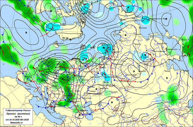 Ложбина циклона с центром в Северном море протянулась далеко на юг, создав сложные погодные условия в южных регионах европейской России, 24-27 октября здесь ожидается пасмурная и ветреная погода с дождями различной интенсивности…