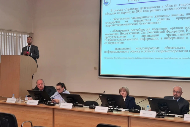 Заместитель директора Гидрометцентра России К.О. Тудрий делает доклад