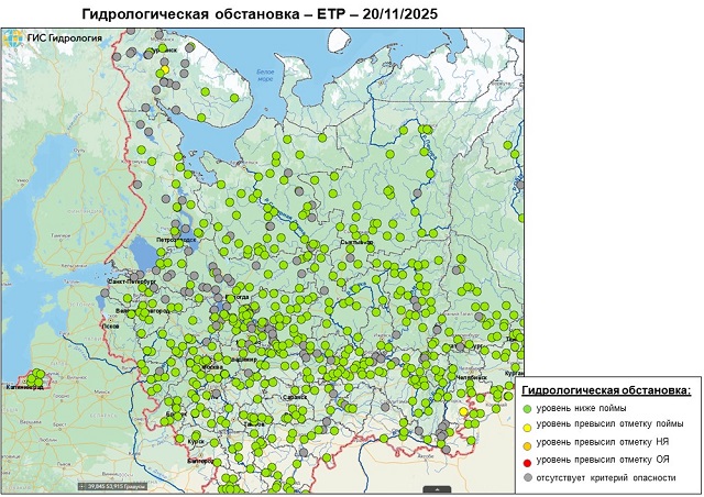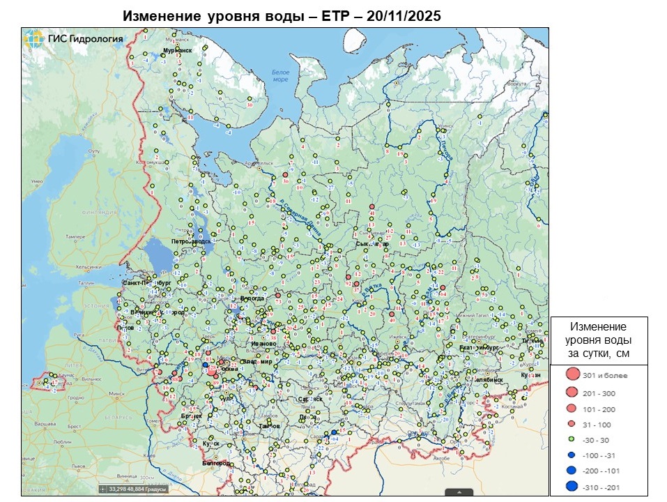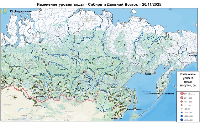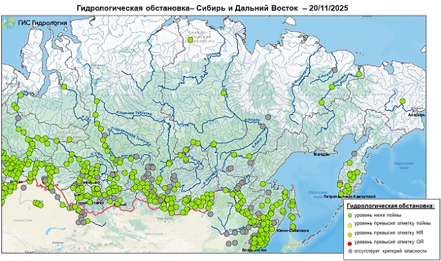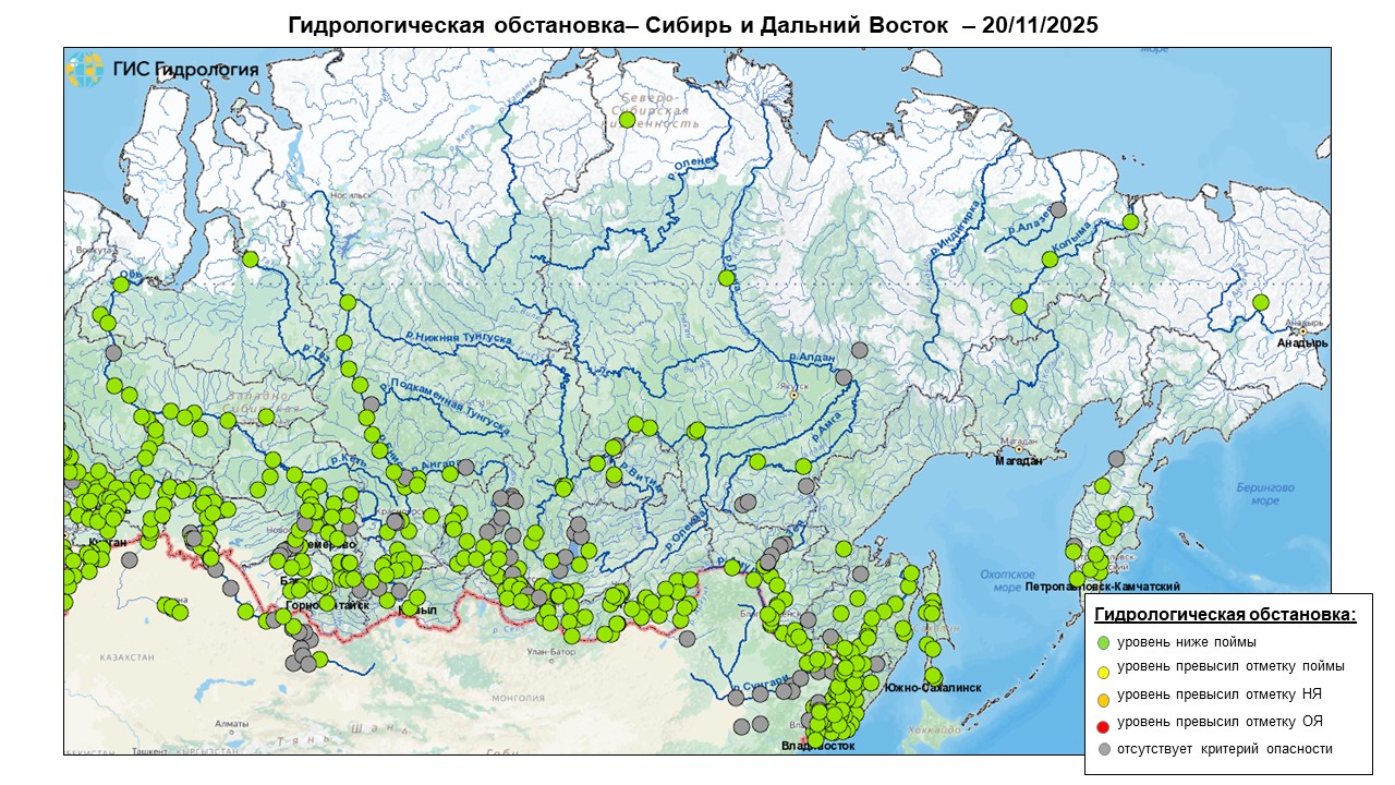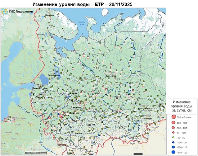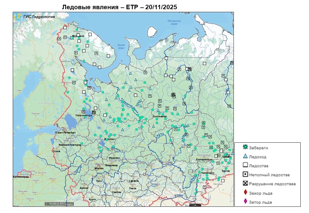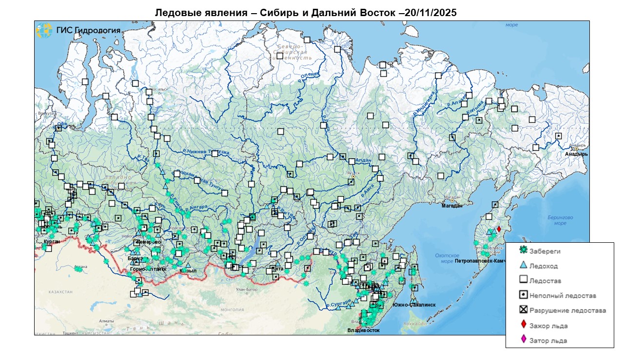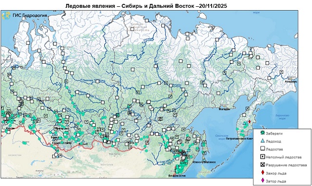 Неблагоприятные и опасные явления на реках, озерах и водохранилищах Российской Федерации по состоянию на 20 ноября 2025 г.