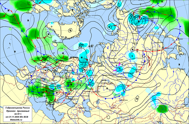 20 ноября на Чукотке мела метель, ветер достигал 25 м/с. 22-24 ноября небольшой снег ожидается лишь местами, ветер усилится 22 ноября до 22 м/с, 23 ноября в районе Певека задует со скоростью 23-28 м/с. 23-24 ноября крепкие морозы немного спадут и составят -22…-27, местами -12…-17 градусов, в континентальной части при прояснениях -32..-37, в центральных и восточных районах повышение до -2…-7 градусов.