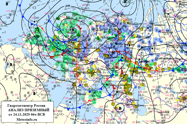 В понедельник, 24 ноября, облачно. Небольшие осадки, местами умеренные (преимущественно дождь). Tемпература в Москве 4...6°, по области 2...7°. Ветер южной четверти 6-11 м/с, местами порывы до 15 м/с.