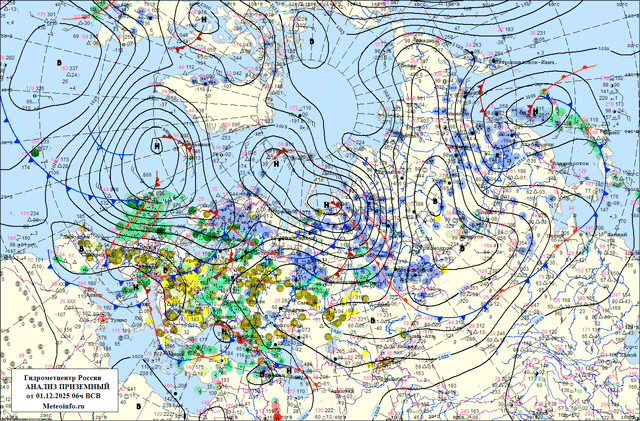 4 декабря. В Хакасии в горах Кузнецкого Алатау сильный снег. На побережье Магаданской области снег, метель, ветер 25-30 м/с. На юге Камчатского края сильный снег, метель, ветер на побережье 25-30 м/с.