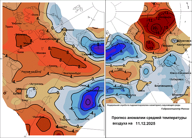 Сегодня в Новгородскую, Псковскую и Ленинградскую области придёт оттепель -1…+2 градуса, намечаются осадки в виде снега и мокрого снега, в Псковской области – с дождём. В Карелию нагрянут сильные снегопады, а температура воздуха составит 0…-5 градусов. 9-11 декабря осадки повсеместно продолжатся, к снегу добавятся дожди, 9 декабря вероятен гололёд, ночью 11 декабря в Карелии планируются сильные осадки. Температура воздуха будет расти с каждым днём и 10-11 декабря составит в течение суток 0…+6 градусов. В Карелии ночью 9 декабря 0…-5 градусов, 10-11 декабря -4…+1 градус, днём 9-10 декабря -3…+2 градуса, 11 декабря 0…+5 градусов. Аномалия максимальной температуры воздуха составит +4…+7 градусов.