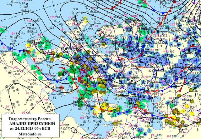 Вечером 25 декабря, ночью и утром 26 декабря в Московской области, ночью с 25 на 26 декабря и утром 26 декабря в Москве ожидается снег, местами сильный снег, в отдельных районах метель; мокрый снег, налипание мокрого снега, гололедица, порывы западного и северо-западного ветра до 15 м/с.