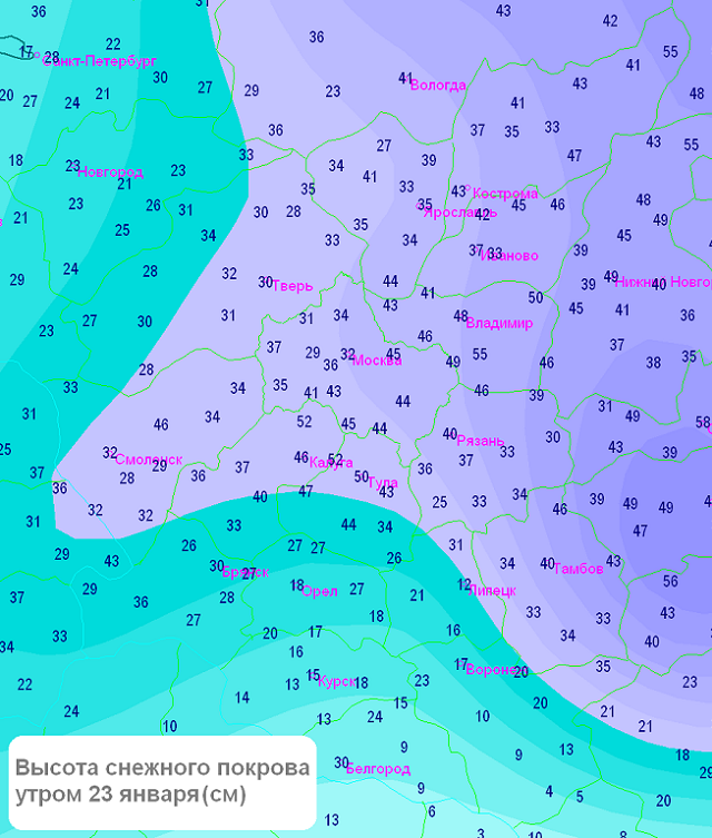 25 января и ночью 26 января в ЦФО сохранится антициклональный характер погоды, существенных осадков не ожидается, в ночные часы на большей части округа морозная погода с температурой -25…-20°, на востоке до -29°, днём преобладающая температура -18…-11°.