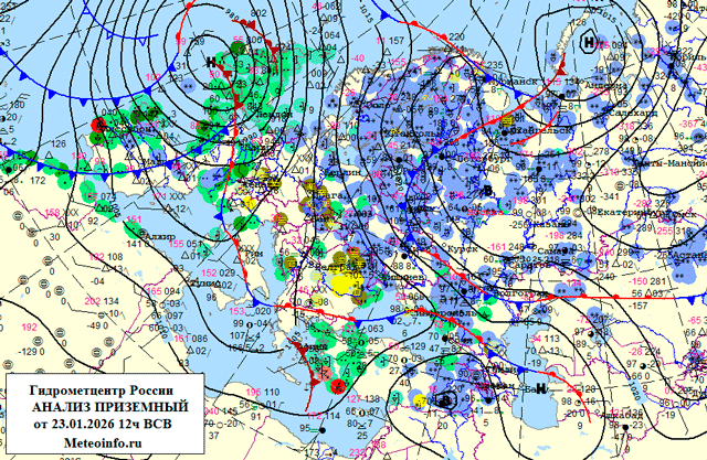 Днем 26 января погоду в западной половине ЦФО будет определять теплый атмосферный фронт европейского циклона, здесь пройдут осадки, преимущественно в виде снега, в отдельных районах ожидается гололед, порывистый ветер до 15 м/с, температура будет повышаться до -10…-3°; на востоке округа сохранится сухая и морозная погода.