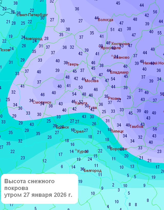 Обзор погоды за прошедшие сутки (день 26 – ночь 27 января 2026 г.) в ЦФО