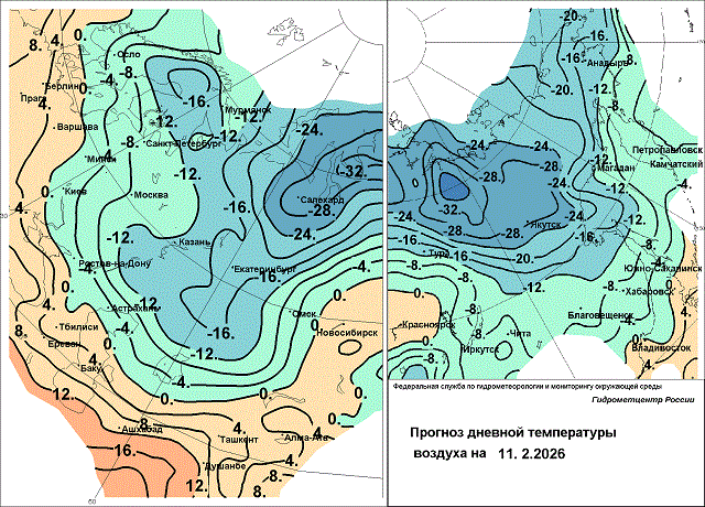 10-11 февраля в дневные часы будут наблюдаться оттепели, ночью погода будет слабо морозной. 11 февраля в ночное время термометры покажут 0…-6, местами -4…-9 градусов, в Республике Алтай до +1 градуса; дневные температуры поднимутся до -2…+4 градусов в Новосибирской и Томской областях, до +1…+6 градусов - в Кемеровской области и Алтайском крае, до +5…+10 градусов - в Республике Алтай. Но уже 12 февраля в связи с прохождением холодного фронта резко похолодает. Ночью ударят морозы, понизив температуру воздуха от -7…-12 градусов в Республике Алтай, до -20…-25 градусов в Томской области; в дневные часы также будет умеренно морозно: -5…-10 градусов в Республике Алтай, -7…-12 градусов в Кемеровской области, -9…-14 градусов – Новосибирской; -15…-20 градусов в Томской области.