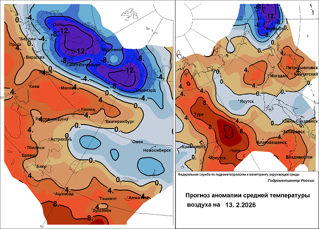 В Новгородской, Псковской, Ленинградской областях пройдет небольшой и умеренный снег, здесь гораздо теплее, но всё же значения средней суточной температуры останутся ниже многолетних значений на 5-8 градусов. 11-13 февраля ночью морозы составят -10…-15, местами -20…-25 градусов, днём температура воздуха будет изменяться в пределах -3…-10 градусов.