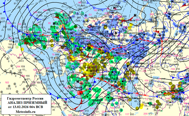 Погода в столичном регионе продолжит динамично меняться. В субботу, 14 февраля, в теплом секторе западного циклона повышение температуры до 2…4°, около рекордного значения (самым теплым день 13 февраля был в 1939 и 1972 гг., когда максимальный термометр показал 3,5°С; день 14 февраля, самым теплым стал в 1960 году, когда на метеостанции ВДНХ было зафиксировано 4,1°С).