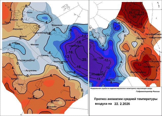 На севере Амурской области 20 февраля намечается сильный снег; 21 февраля небольшая передышка и преимущественно без осадков; 22 февраля снова нагрянут сильные осадки в виде мокрого  снега и  снега, с ветром  18-23 м/с, образуются  гололедные явления. 20 февраля в дневные часы на юге области  ожидаются около нулевые температуры -3…+2 градуса, на севере -небольшой морозец 0…-5 градусов. 22 февраля днём похолодает до -2…-7, на севере до -5…-10 градусов.