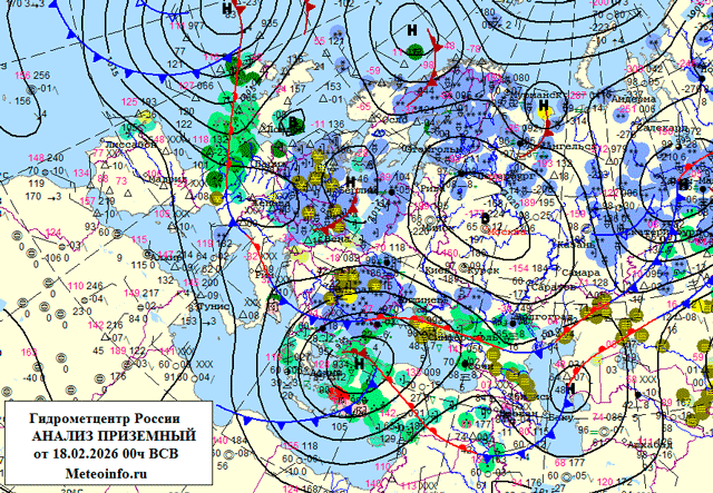 Обзор погоды по ЦФО за прошедшие сутки (день 18 - ночь 19 февраля 2026 г.)