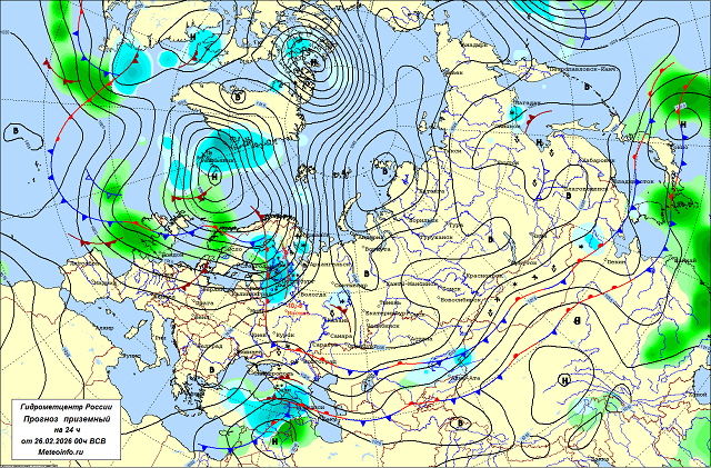На северо-западные регионы России  через Скандинавию надвигается атлантический циклон с центром в районе Исландии. Ложбина и атмосферные фронты циклонического вихря уже дотянулись до нашей страны, ухудшая погодные условия. Зима затаила дыхание в ожидании перемен, влажный ветер со стороны Атлантики несёт первые признаки весны  в виде мокрых снегопадов, переходящих в дождь,  и оттепелей…