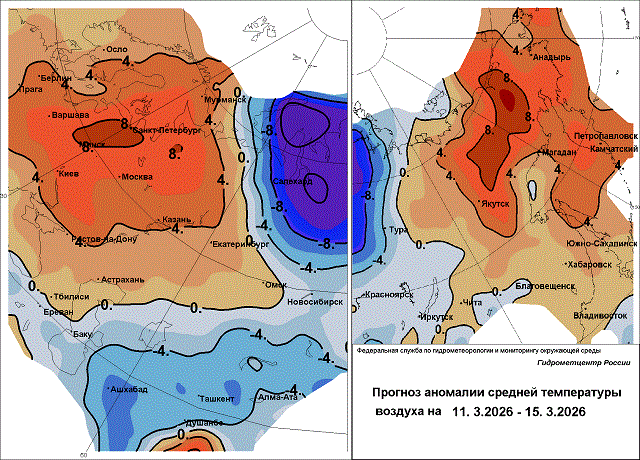 Погода ближайших дней будет больше похожа на начало апреля, температура будет превышать норму на 6° и более. В отдельные дни температура может приблизиться к рекордно высоким температурным показателям для этого времени. Так 12 марта 2025 года температура в столице повышалась до 11° тепла. 13 марта 2002 года потеплело до 11,5°.