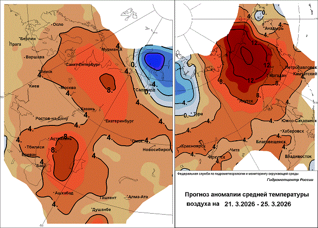 Температурный фон в Северо-Западном округе 21-25 марта будет повышенным, аномалии средней суточной температуры воздуха достигнут +5…+10 градусов.