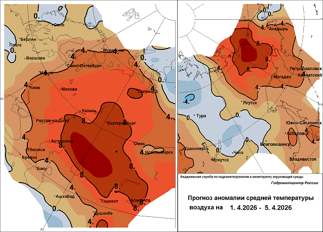 1-2 апреля на юге Камчатского края и 1-3 апреля на севере Курильской гряды под влиянием морского циклона пройдут небольшие и умеренные осадки в виде мокрого снега и дождя, ветер на Камчатке усилится до 15-20 м/с. 3 апреля на Курилах в течение суток температура воздуха будет удерживаться в пределах -2…+3 градусов, на юге Камчатского полуострова максимальная температура составит +3…+8 градусов, на севере – 0…+5 градусов.