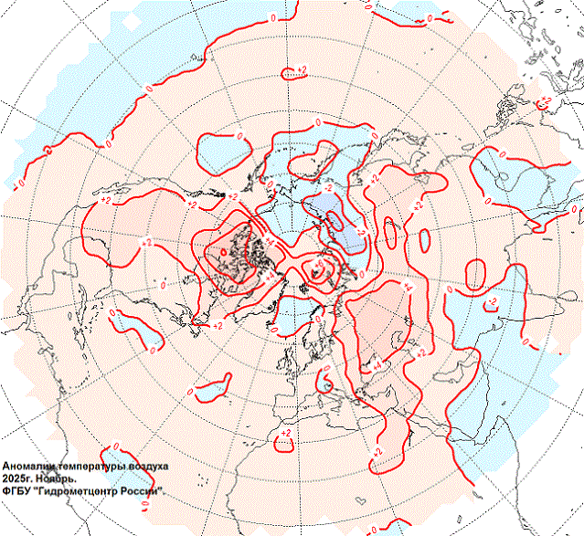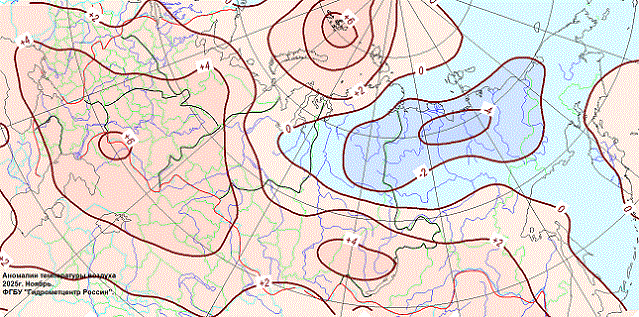 Аномалии температуры воздуха в России в ноябре 2025 г.