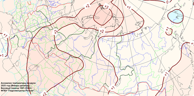 Прошедший 2025 год стал в России вторым самым теплым в истории регулярных метеорологических наблюдений в стране, т.е. с 1891 года. Еще теплее был только 2020 год, когда единственный раз средняя температура года превысила 0°.