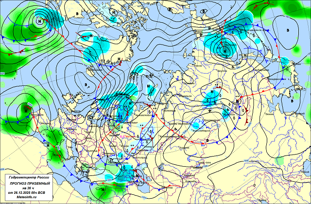 Обзор атмосферных процессов и наиболее важных явлений погоды с 26 по 30 декабря 2025 г.
